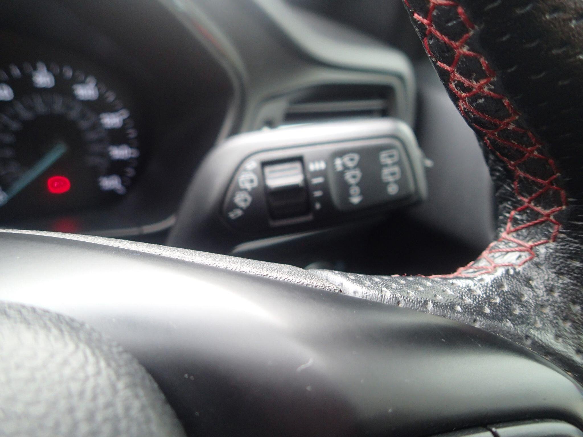 - Steering Wheel - 3-Spoke Flat Bottom - Leather Trimmed with Red Stitching